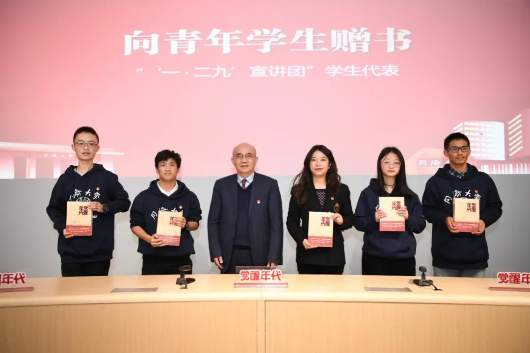 龍平平教授向同濟大學“一·二九宣講團”學子贈書。龍平平教授表示,上海是中國共產黨的誕生地和初心始發地,選擇同濟大學作為《覺醒年代》全國校園行的首站,向同學們贈書,希望借此機會與大家共同探討《覺醒年代》對當代大學生的啟迪,激勵青年學生以百年前的革命青年為楷模,努力續寫覺醒篇章,成長為能擔當民族復興大任的時代新人。