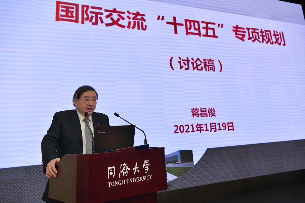 副校長蔣昌俊就同濟大學國際交流“十四五”專項規劃工作進行了專題匯報,介紹了該專項規劃的發展戰略目標、主要建設與改革內容及保障措施,回顧了“十三五”期間同濟大學國際交流與合作取得的成果,闡述了同濟大學國際合作的特色。