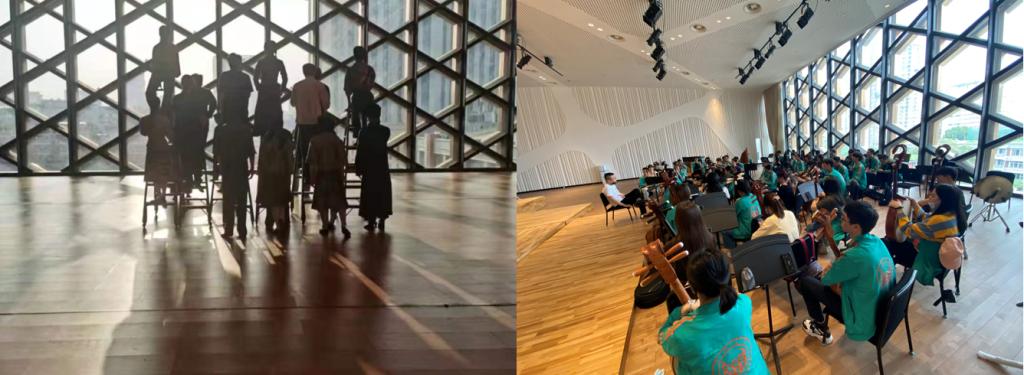 學(xué)生藝術(shù)總團學(xué)生在走臺間隙進行排練