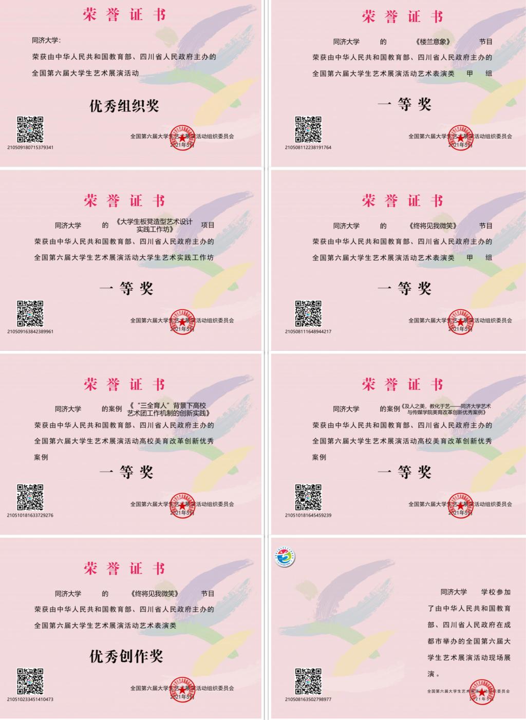 5月12日,全國第六屆大學(xué)生藝術(shù)展演活動在成都圓滿落幕。我校入圍現(xiàn)場展演的民樂合奏《樓蘭意象》、舞蹈《終將見我微笑》、板凳造型藝術(shù)設(shè)計實踐工作坊及兩案例《“三全育人”背景下高校藝術(shù)團工作機制的創(chuàng)新實踐》《及人之美,教化于藝——同濟大學(xué)藝術(shù)與傳媒學(xué)院美育改革創(chuàng)新優(yōu)秀案例》5個項目,均獲得全國一等獎。此外,舞蹈《終將見我微笑》獲優(yōu)秀創(chuàng)作獎,我校獲得優(yōu)秀組織獎,展演總成績位列上海高校之首,在全國高校中名列前茅。