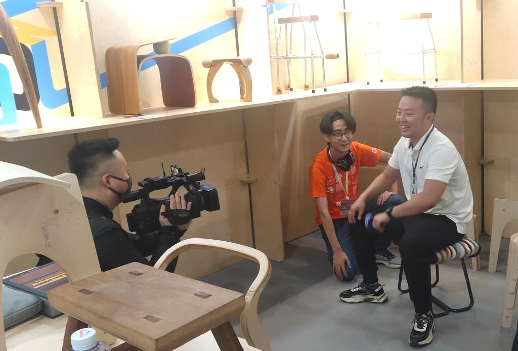 同濟大學(xué)板凳造型藝術(shù)設(shè)計實踐工作坊代表上海參加本屆大藝展的工作坊展覽。板凳設(shè)計工作坊不僅強調(diào)傳統(tǒng)手工藝與當(dāng)代數(shù)字加工技術(shù)的結(jié)合,還將綠色設(shè)計理念與造型美育相結(jié)合。教育部體育衛(wèi)生與藝術(shù)教育司副司長萬麗君、上海市藝教委主任陳克宏、上海市教委副主任倪閩景等現(xiàn)場參觀工作坊。我校學(xué)生段聞笛在現(xiàn)場接受了四川新聞頻道新聞現(xiàn)場欄目采訪,詳細(xì)介紹了“大學(xué)生板凳造型藝術(shù)設(shè)計實踐工作坊”幾款板凳的制作過程和創(chuàng)新創(chuàng)意,向觀眾傳達(dá)了藝術(shù)源于生活、藝術(shù)融入生活的工作坊理念。