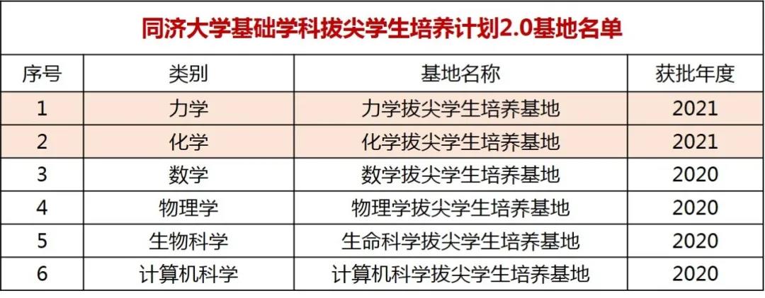 近日,教育部公布基礎學科拔尖學生培養計劃2.0基地(2021年度)名單,同濟大學新獲批力學、化學2個拔尖學生培養基地。加上此前獲批建設的數學、物理學、生命科學、計算機科學4個基地,至此,同濟大學共有6個基地入選“拔尖學生培養計劃2.0”。
