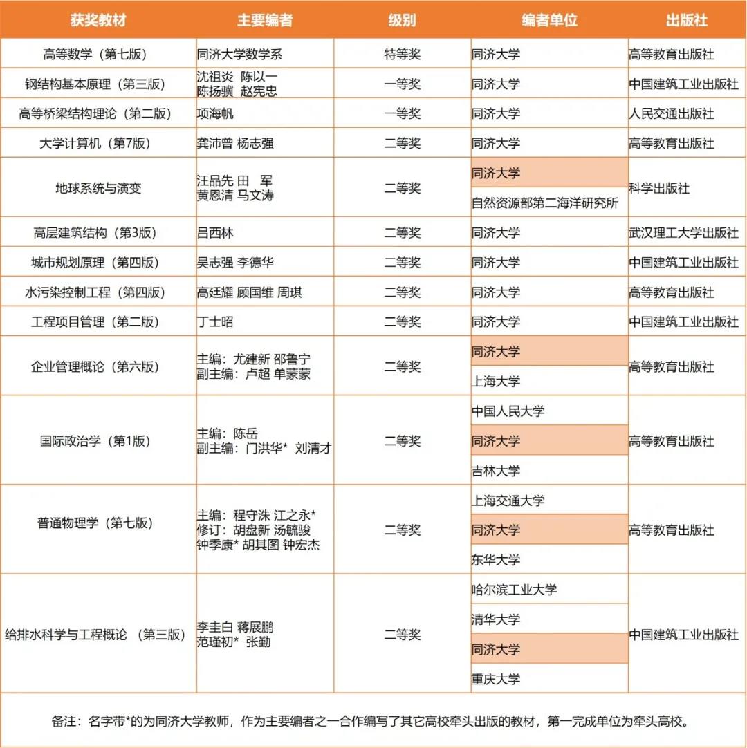 同濟(jì)大學(xué)首屆全國(guó)教材建設(shè)獎(jiǎng)獎(jiǎng)項(xiàng)一覽