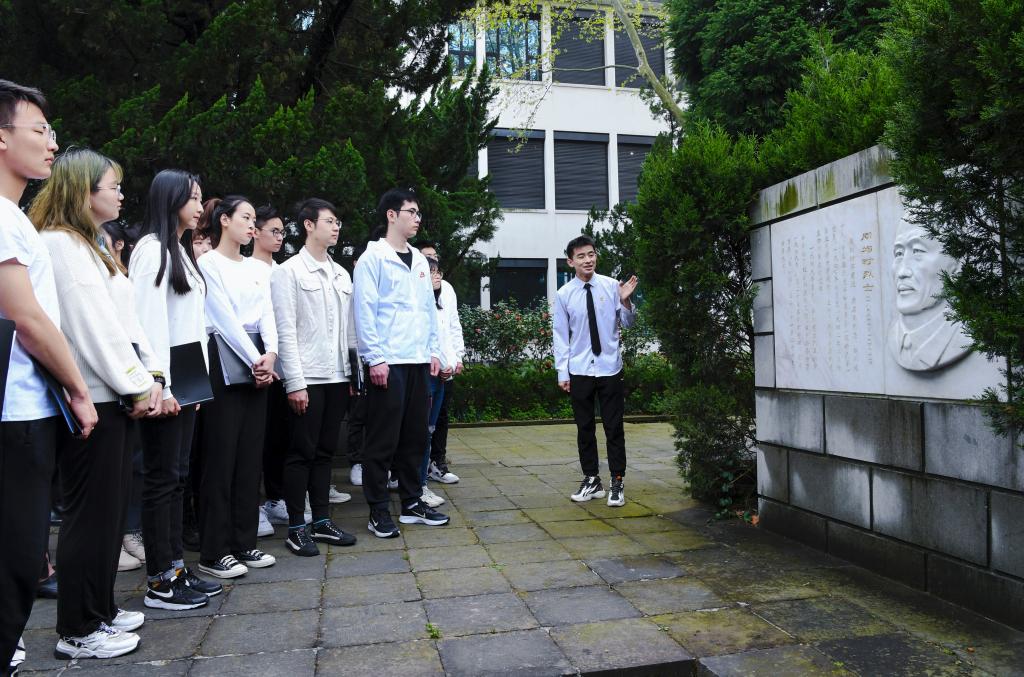 獻花后,師生還共同參觀了烈士紀念園。第四屆殷夫班成員康校博生動講述了“五卅”先鋒尹景伊、革命詩人殷夫等烈士的事跡。師生們懷著崇敬的心情,共同瞻仰革命烈士,感受同濟愛國青年的革命精神。