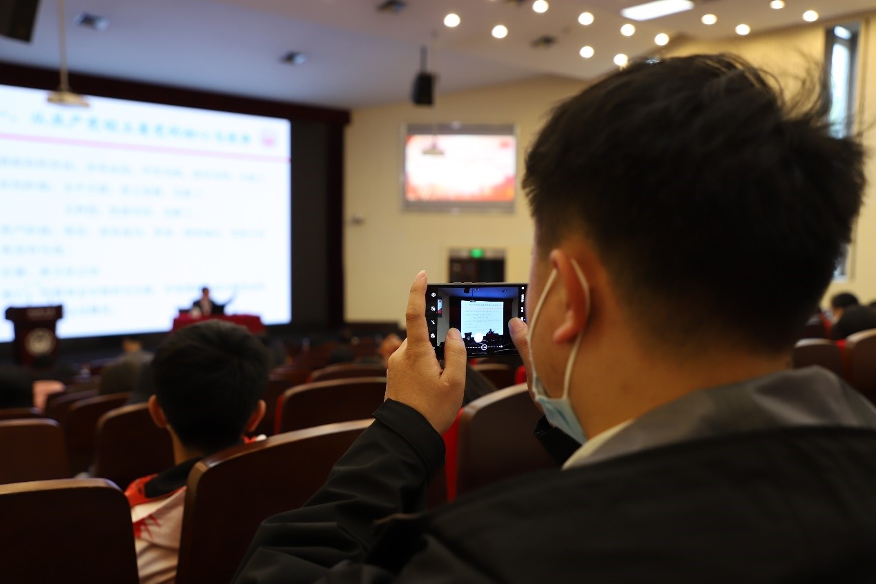 隨后,馬克思主義學(xué)院李占才教授以《以史為鏡 百年黨史映鑒共產(chǎn)黨員的初心與使命》為題,為師生作了首講報告。李占才教授以深厚的學(xué)識為師生解讀近代中國的兩大變化,并基于當(dāng)時中國的國情深入剖析近代中國的兩大主要矛盾,論述了近代中國的兩大歷史任務(wù)。他表示,為了完成“爭取民族獨立和人民解放、實現(xiàn)國家富強(qiáng)和人民幸福”這兩大歷史任務(wù),中國人民為探尋中國救亡圖存、富民強(qiáng)國之路進(jìn)行了不懈努力。他帶領(lǐng)大家回顧了當(dāng)時清政府、農(nóng)民階級、資產(chǎn)階級的一系列救國過程與失敗結(jié)局,重溫了共產(chǎn)黨的誕生及取得新民主主義革命偉大勝利的崢嶸歲月。通過李占才教授聲情并茂的講述,師生們深刻理解了何為“百年風(fēng)雨,歷史和人民選擇了中國共產(chǎn)黨”,也更加堅定了歷史和人民的選擇,誓將小我融入大我,青春獻(xiàn)給祖國,力爭建功立業(yè)新時代。(丁瑞庭)