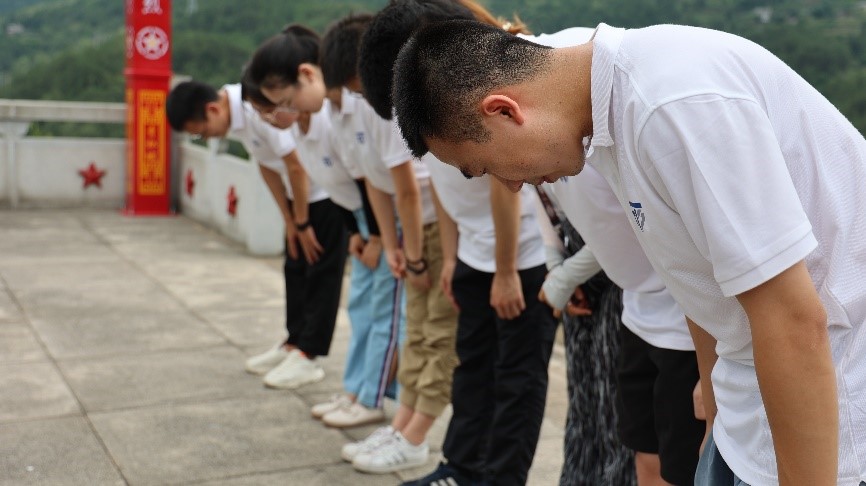 丙安古鎮入口的赤水河吊橋就是當年紅軍一渡赤水所在的渡口,吊橋上紅星閃閃,“長征”二字分外搶眼,踩著吊橋的一塊塊木板,隊員們身臨其境,仿佛穿越回那個戰火紛飛的年代。青杠坡紅軍戰斗遺址四面環山,巍巍青杠坡見證了紅軍戰士鐵骨鑄忠魂,隊員們拾階而上,心情愈發沉重。石碑后面的烈士陵園里,一座座墓碑無聲地向隊員們講述著往昔崢嶸歲月,浮雕塑像上的身影愈發高大偉岸,隊員們接受了思想洗禮。在四渡赤水紀念館,通過地圖演示、物品陳列、圖片展示和文字講解,隊員們更加深入了解了四次飛渡赤水河的光輝歷史。團隊成員劉樂體會十分深切:“是戰士們的堅定意志、聽從指揮,確保了勝利的取得,我們要在今后的工作和學習中加倍努力才行。”教師王同宇感慨道:“通過沉浸體驗式的教育學習,隊員們更加堅定了永遠跟黨走的信心與決心,四渡赤水留給我們的不僅是一場經典戰役,更多的是紅軍當年的頑強戰斗精神,先輩們崇高的革命精神將滋養無數中國青年?!?/p>