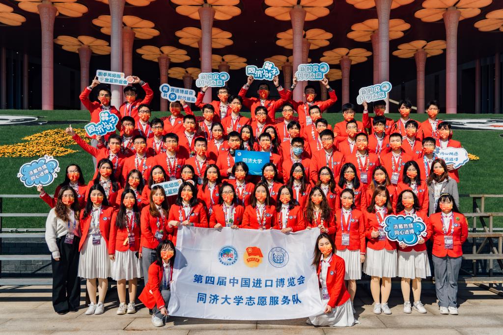 相關負責人介紹,本屆進博會通過學生自主報名、學院審核初篩、學校公開遴選、崗位業務考核四級選拔,組建了一支來自27個學院共計120人的高素質志愿者團隊。隊伍人員構成豐富,有黨員20人,還有參與過往屆進博會的二、三年級“小葉子”4人,支教團成員3人,退伍大學生4人。自10月25日至11月1日,我校志愿者分三批奔赴會場,全員上崗。他們分別在上海館講解組、人力資源保障組、綜合服務區運營統籌組、內外賓接待組、虹橋論壇組開展志愿服務或擔任一級體驗官。志愿者們以飽滿的精神狀態,為嘉賓游客提供重要服務保障,彰顯了同濟學子的志愿奉獻與責任擔當。