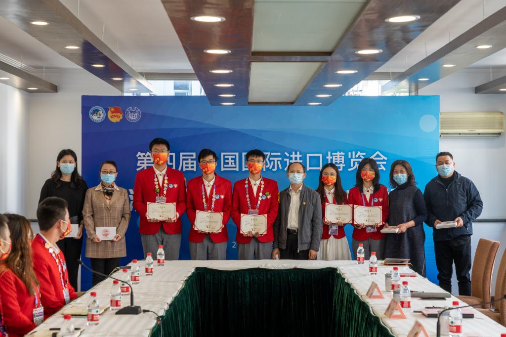 會上,來自綜合統籌組、后端保障組等不同崗位的4名學生志愿者代表與大家分享了他們在進博志愿服務中的成長和收獲。他們表示,志愿服務并不局限于崗位、不局限于形式,他們將會帶著這份志愿精神繼續前進,讓青春因奉獻而美麗。與會領導為優秀志愿者代表頒發了榮譽證書。